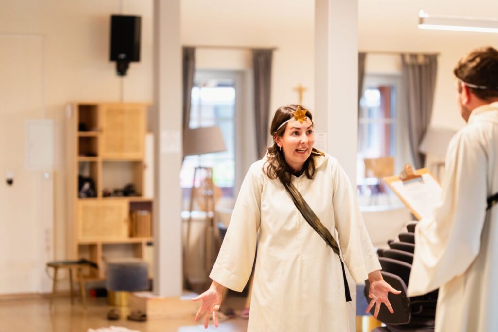 Der Samstag startete feierlich mit der Hl. Messe, ein ruhiger Atemzug vor dem großen Sturm: dem Casting. Die Spannung war fast mit Händen greifbar. Alle fragten sich heimlich: Welche Rolle wird wohl meine sein? Nach der Verkündung mischten sich Jubel, Überraschung und neugierige Aufregung zu einer wunderbaren Probenstimmung.