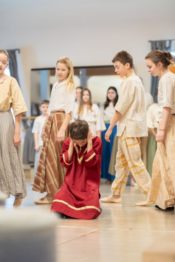 An diesem Wochenende haben wir das Musical „Zachäus“ mit unserer neuen KEY-Gruppe einstudiert, da ein neues Jahr gestartet hat, manche aufgehört haben und auch vier Kinder und Teenager dazugekommen sind. Am Freitag begannen wir DarstellerInnen bereits mit den Proben im Begegnungsraum, während die Technik Academy mit Johannes startete und Franziska die Kostüme für alle vorbereitete. Am Samstag in der Früh gab es gleich die Hl. Messe, danach ein leckeres Frühstück und schon starteten wir wieder mit den Proben. Samstagabend war die beliebte KISI-Family-Feier – seit langem für uns mal wieder im KISIHAUS, da wir jetzt so oft auf Tournee waren. Im Anschluss tanzten wir noch die Family-Tänze.