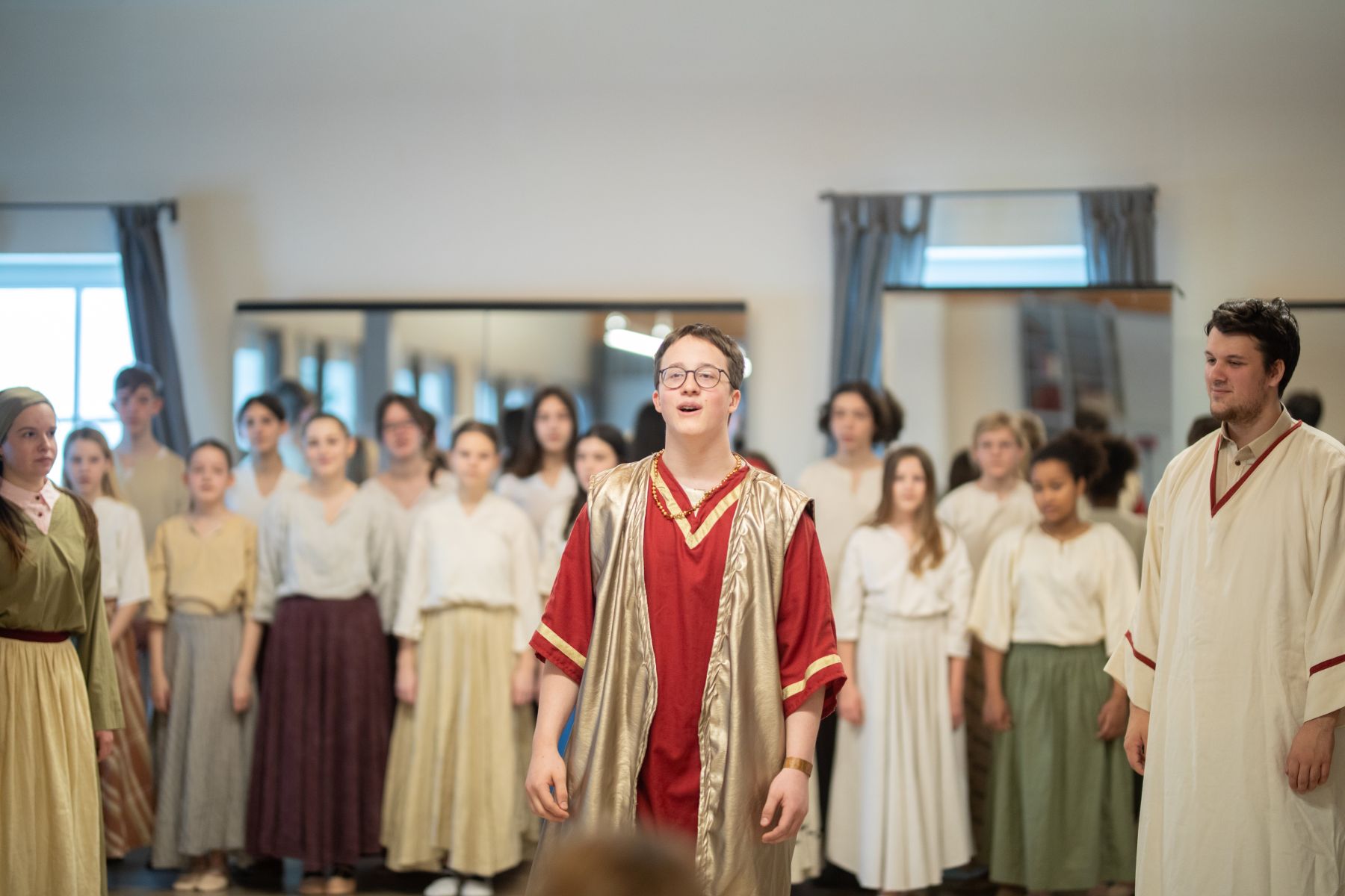 An diesem Wochenende haben wir das Musical „Zachäus“ mit unserer neuen KEY-Gruppe einstudiert, da ein neues Jahr gestartet hat, manche aufgehört haben und auch vier Kinder und Teenager dazugekommen sind. Am Freitag begannen wir DarstellerInnen bereits mit den Proben im Begegnungsraum, während die Technik Academy mit Johannes startete und Franziska die Kostüme für alle vorbereitete. Am Samstag in der Früh gab es gleich die Hl. Messe, danach ein leckeres Frühstück und schon starteten wir wieder mit den Proben. Samstagabend war die beliebte KISI-Family-Feier – seit langem für uns mal wieder im KISIHAUS, da wir jetzt so oft auf Tournee waren. Im Anschluss tanzten wir noch die Family-Tänze.